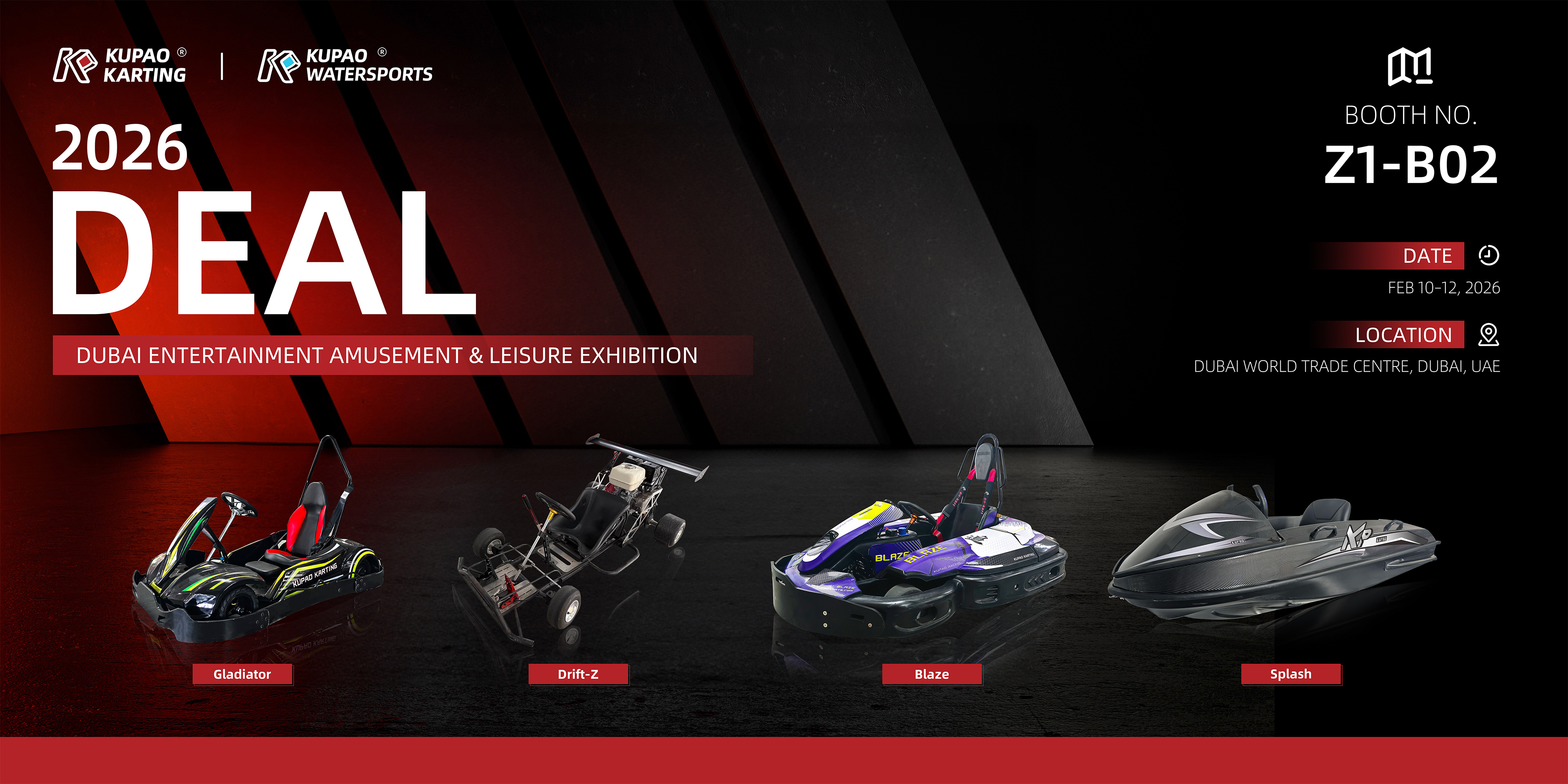 From February 10th to 12th, 2026, the global entertainment and leisure industry will once again turn its attention to Dubai, the city of innovation. We are honored to announce that KUPAO will showcase a range of its star karting products at the Dubai World Trade Centre. Visit us at Booth "Z1-B02" for an immersive speed experience presented to global clients and enthusiasts.