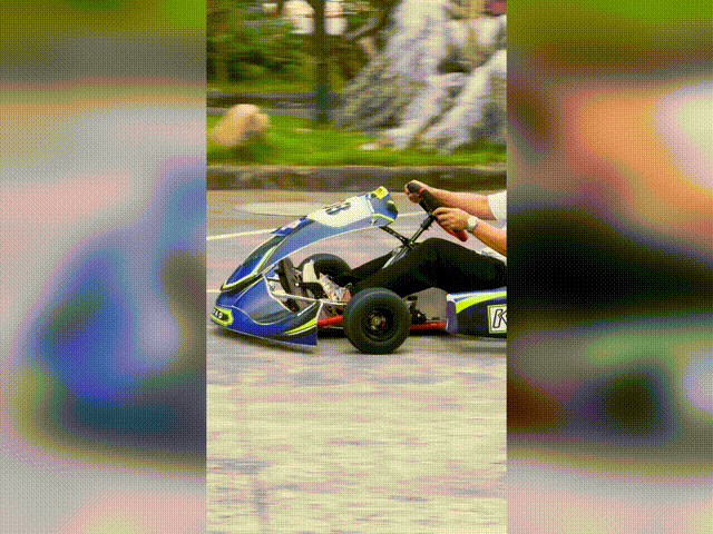 The go-kart has no unnecessary decorations, focusing solely on speed and handling, highlighting its pure racing nature.