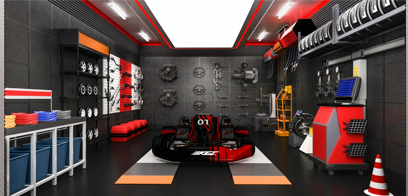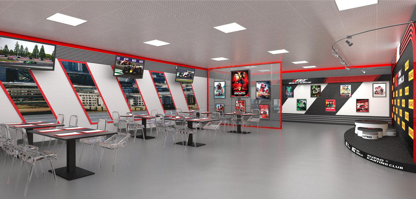 The overall design balances professionalism and user experience, integrating the characteristics of karting into every part of the spatial layout, and sets a professional example for adult karting venue design.