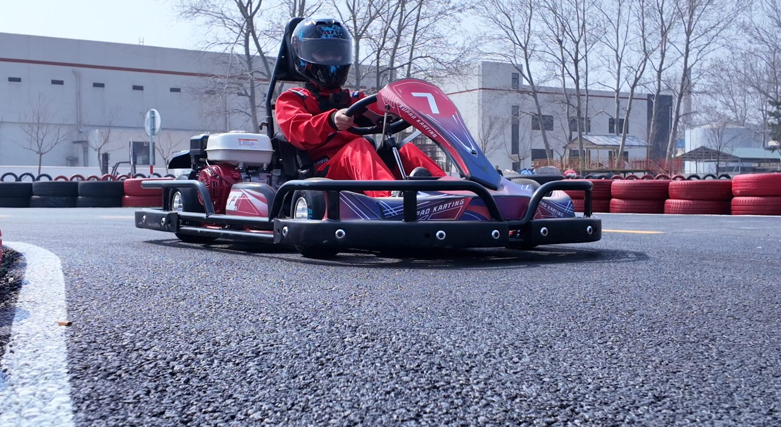 A key highlight of this go kart track design is its exceptional on-site execution. Our team delivered a near-perfect 90%+ fidelity between the initial architectural renderings and the finished track. Every detail, from the tire barrier color and arrangement to the artificial turf landscaping and track markings, was meticulously implemented to match the original design vision.