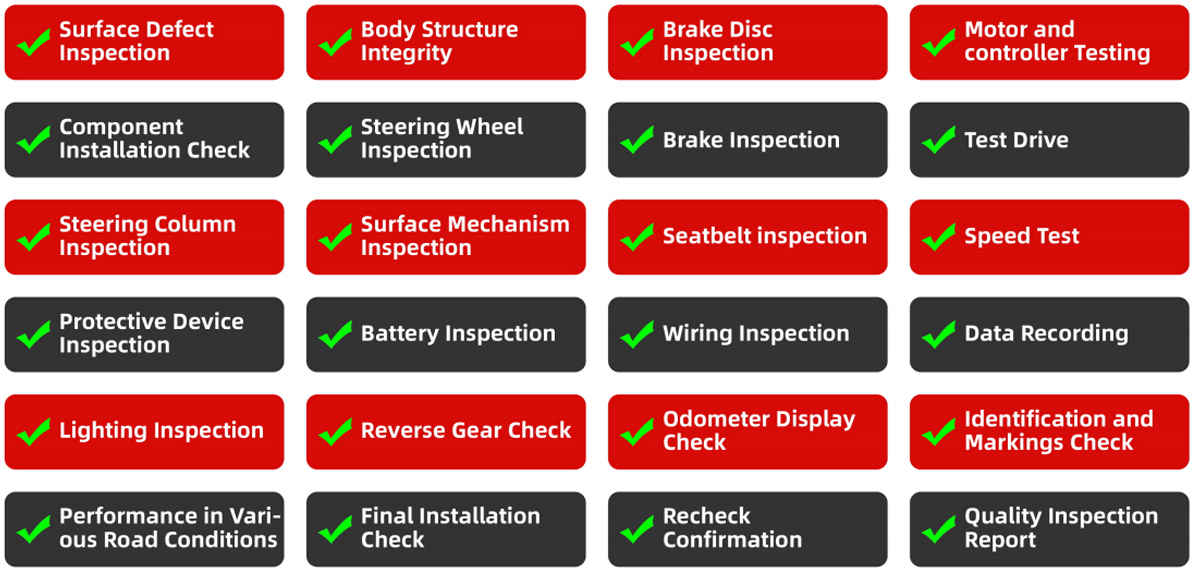 Within a standardized assembly process, each vehicle undergoes meticulous debugging and calibration. Before leaving the factory, every kart must pass over 20 quality tests, including brakes, steering, and power systems, ensuring that each delivered vehicle meets high-quality standards.